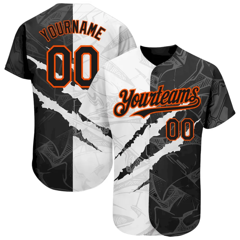 £38.99Custom Graffiti Pattern Black-Orange 3D Scratch Authentic Baseball Jersey