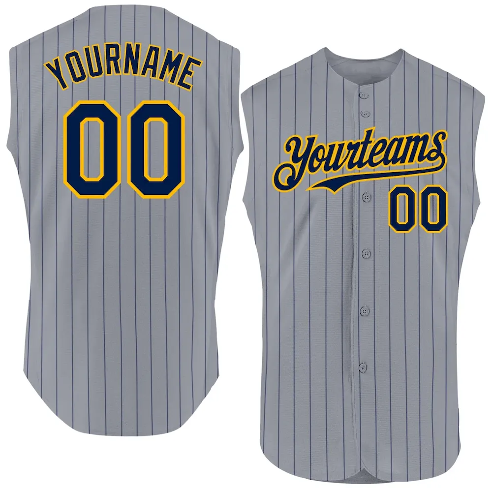 £29.99Custom Gray Navy Pinstripe Gold Authentic Sleeveless Baseball Jersey
