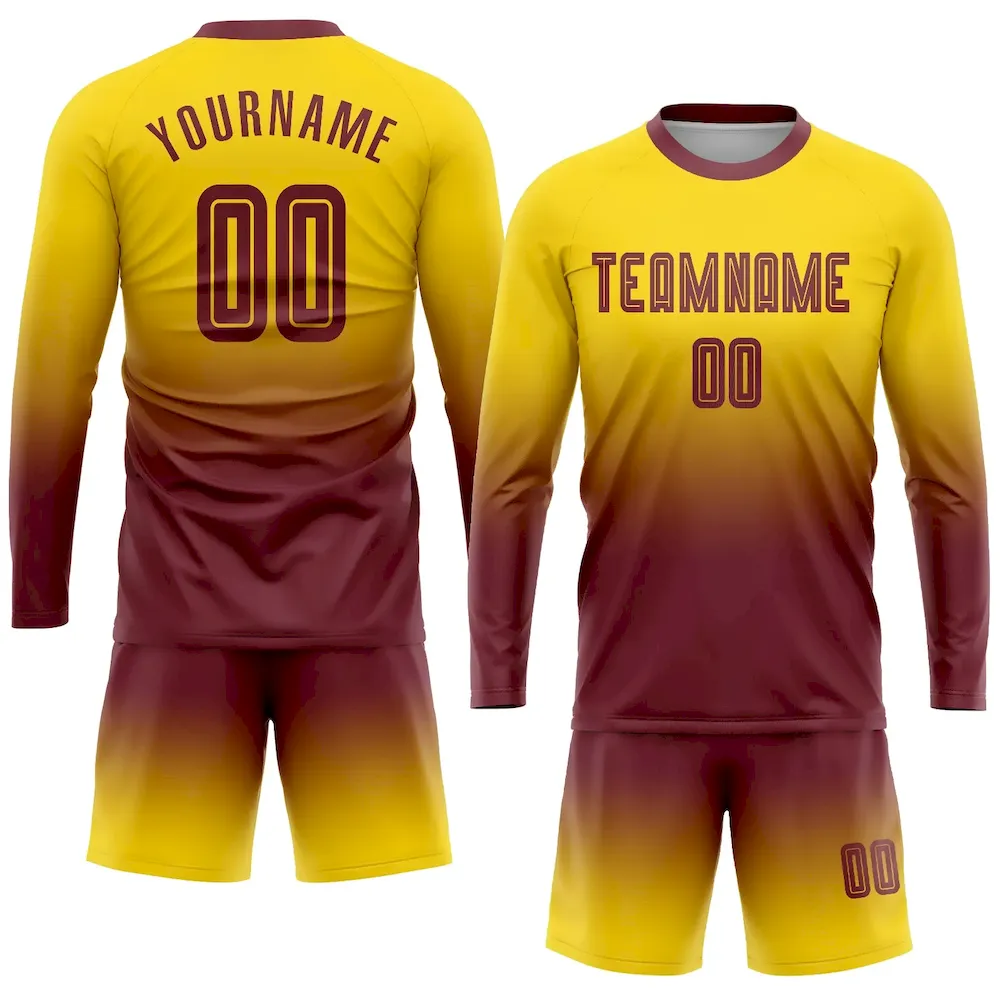 £16.99Custom Gold Burgundy Sublimation Long Sleeve Fade Fashion Soccer Uniform Jersey