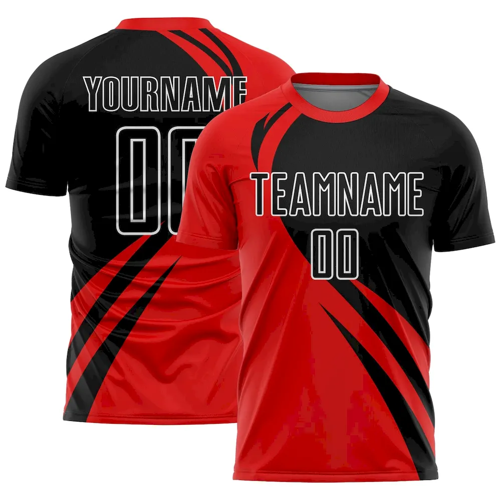 Custom Red Black-White Curve Lines Sublimation Soccer Uniform Jersey