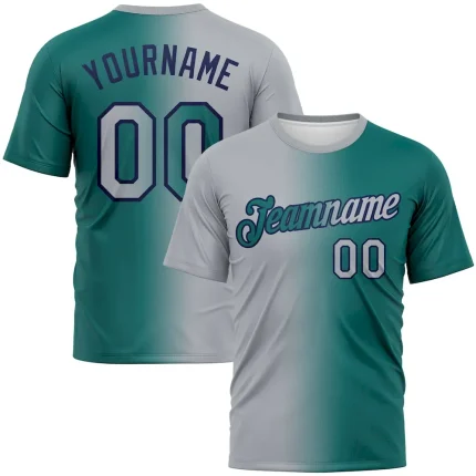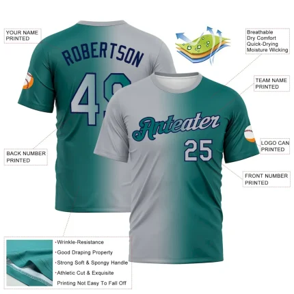 Custom Teal Gray-Navy Gradient Fashion Performance T-Shirt